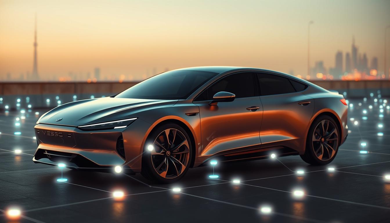 Sportliches Elektroauto mit modernem Design, innovative Technologie und futuristische Atmosphäre.