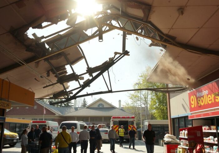 Dach im Kassenbereich eines Supermarktes in Lauchringen eingestürzt. Erfahren Sie die Details des dramatischen Vorfalls - Dach eingestürzt Supermarkt